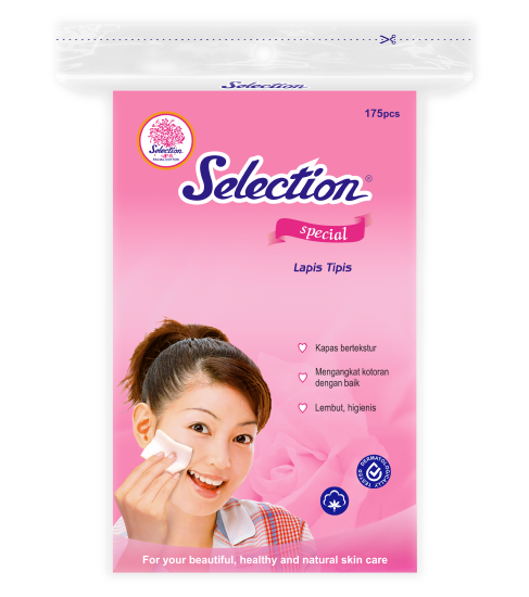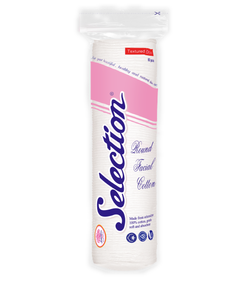 Selection Facial Cotton features a unique texture that effectively removes cosmetic residues and dust from the face without leaving cotton fibers behind.